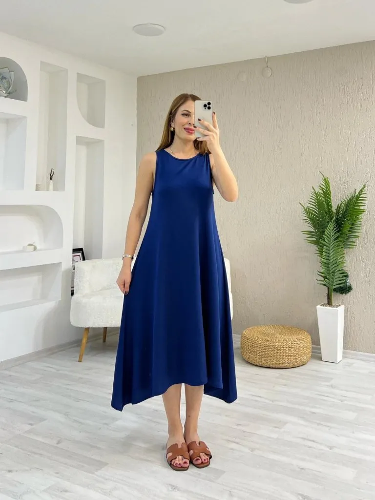 فستان ميني كلوش بياقة مربعة وأكمام قصيرة مع تفصيل جيب جانبي. مناسب للارتداء اليومي والمشاوير الصيفية المريحة.