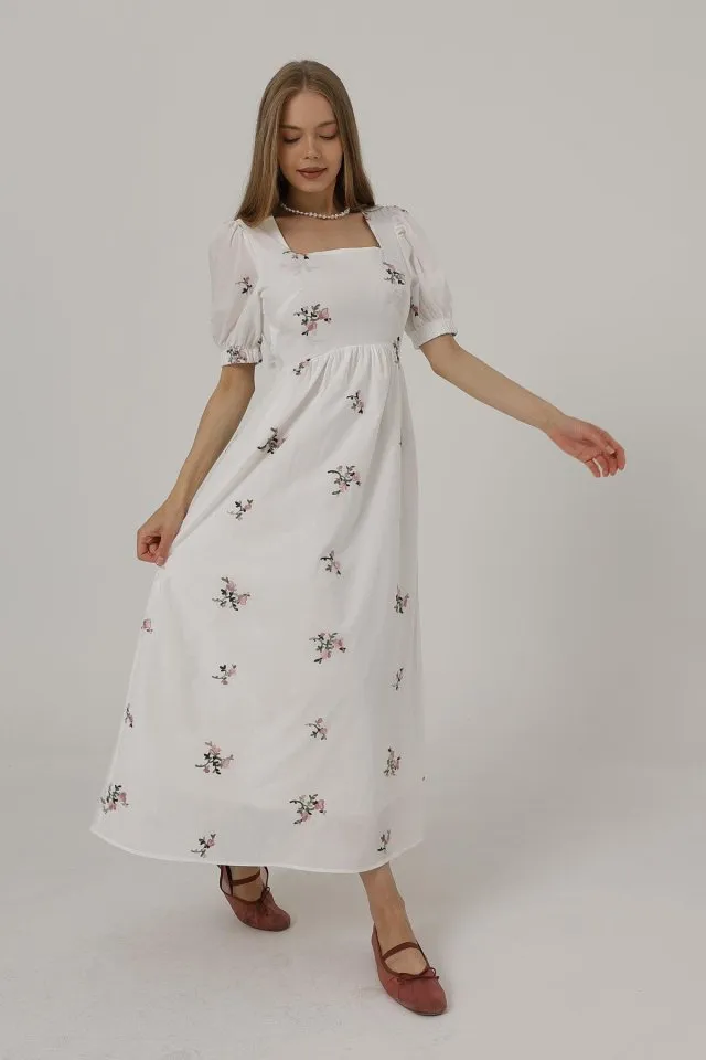 فستان ماكسي كلوش بياقة قائمة وأكمام طويلة مع تصميم كتف مكشوف. مصمم من قماش محبوك مخرم مع حزام خصر قابل للتعديل لإطلالة صيفية أنيقة ومريحة للنساء.