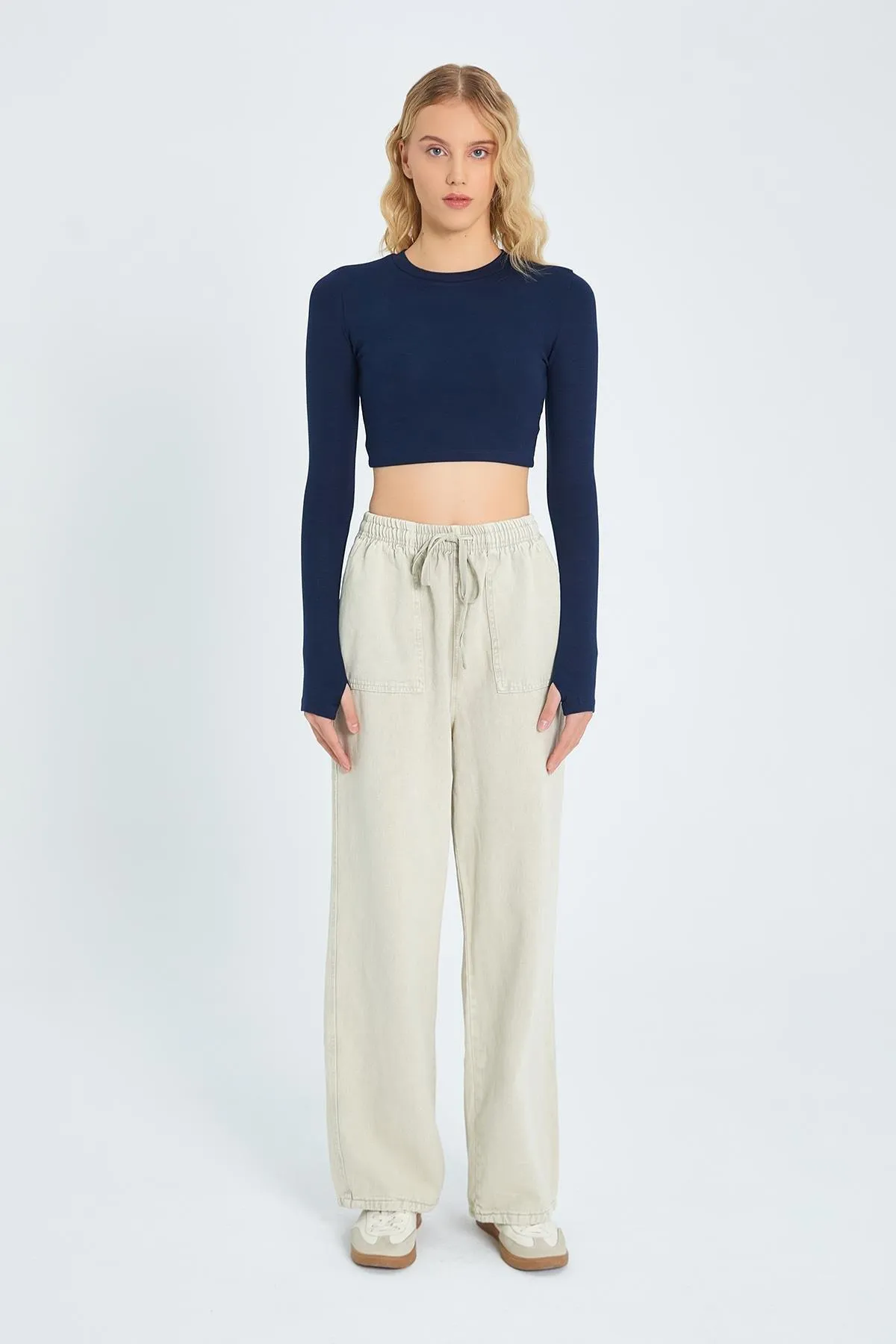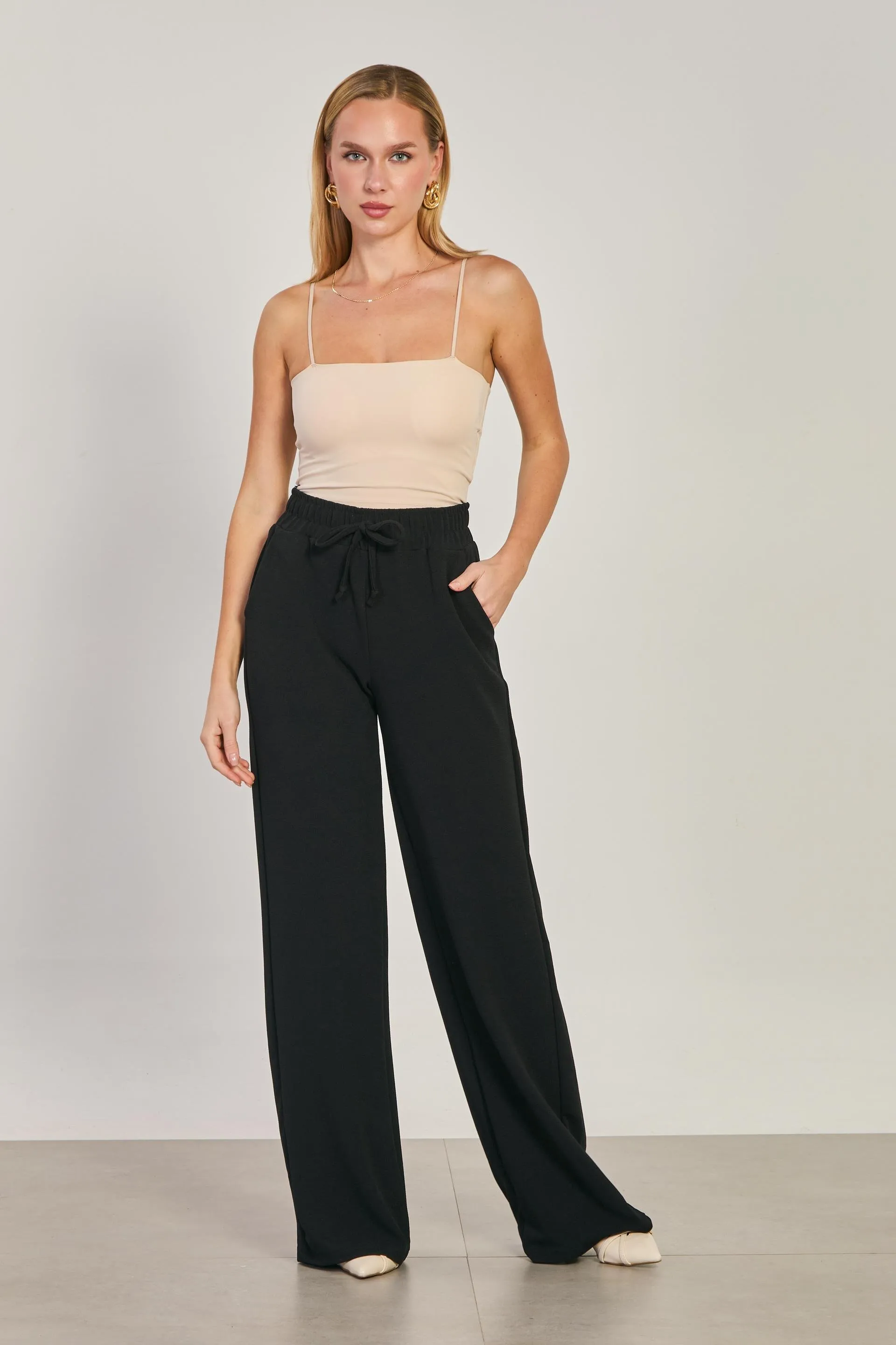 بنطال نسائي مجعد واسع الساقين بتصميم أمامي وخصر مطاطي لإطلالات العيد