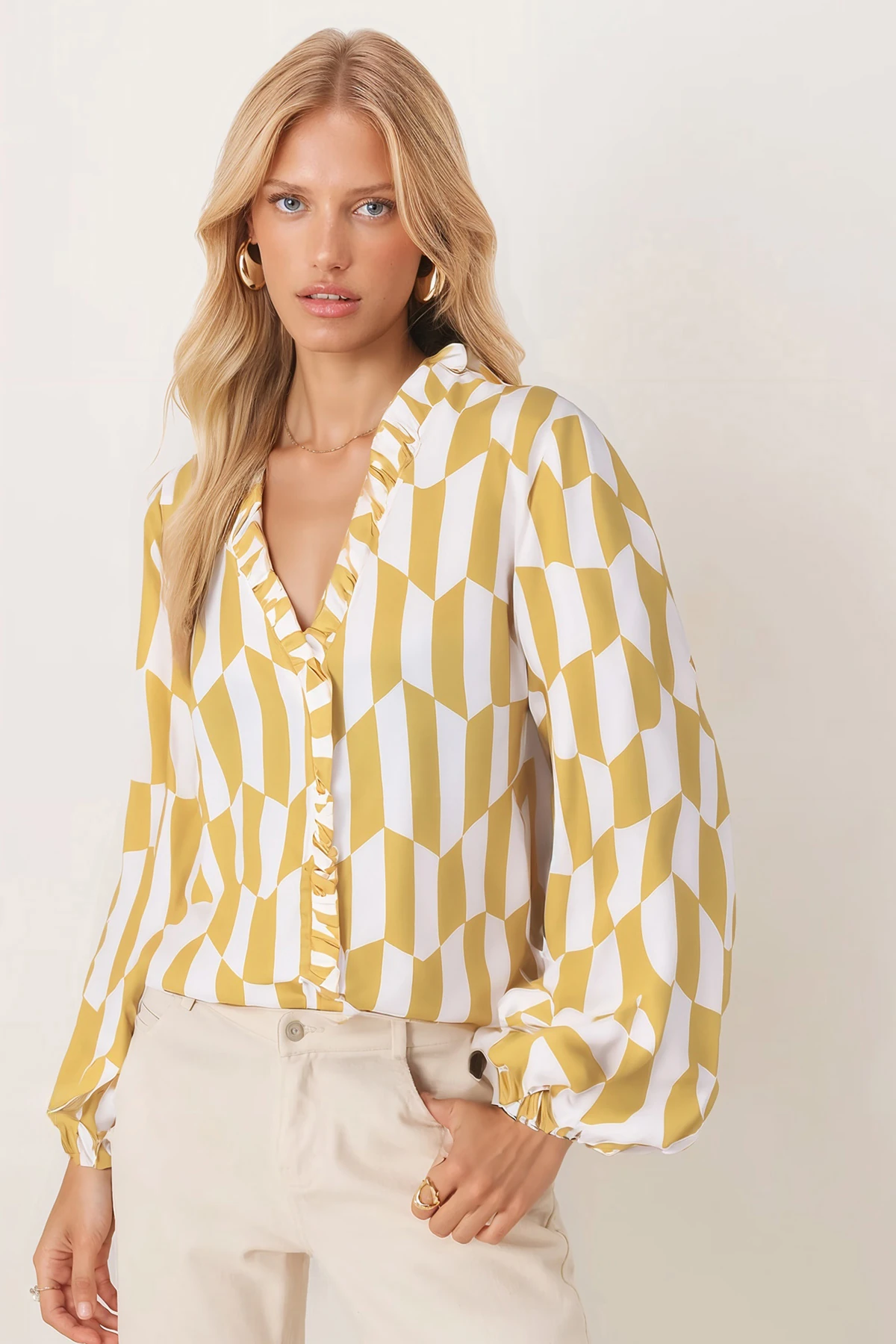 بلوزة طويلة بأكمام واسعة وياقة قائمة مع تصميم مشبك للنساء - Beyond Store