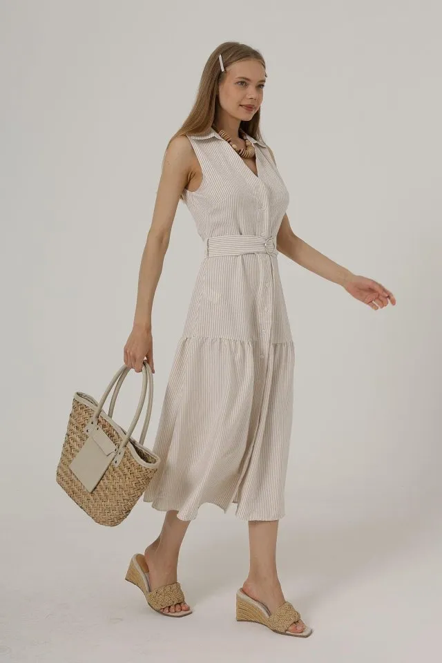 فستان مخرم محبوك بقصة محددة للجسم يناسب الأيام الحارة ومشاوير المدينة