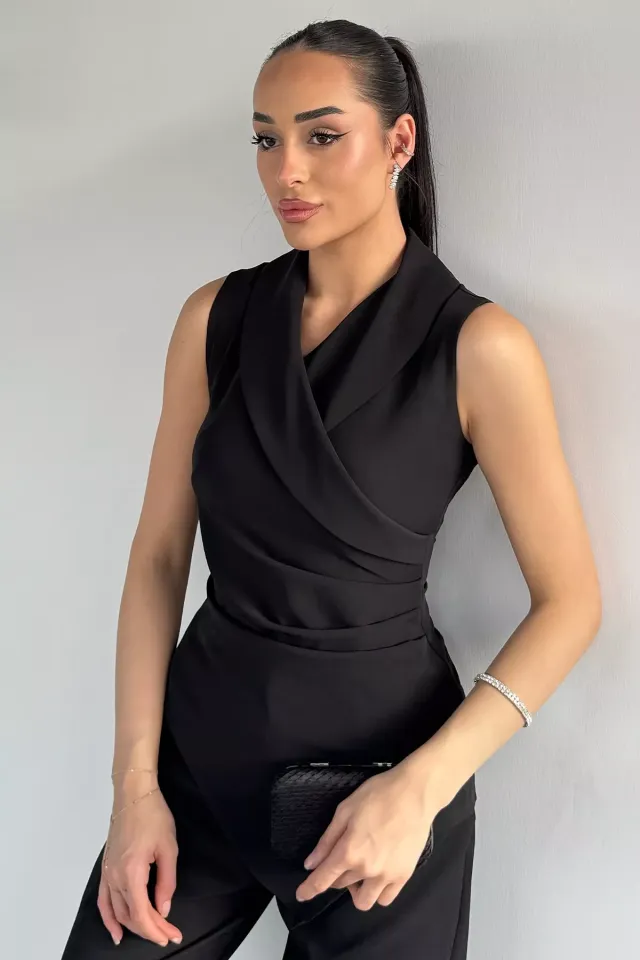 بلوزة محبوكة بياقة V وتفصيل كسرات ناعمة للنساء - Beyond Store