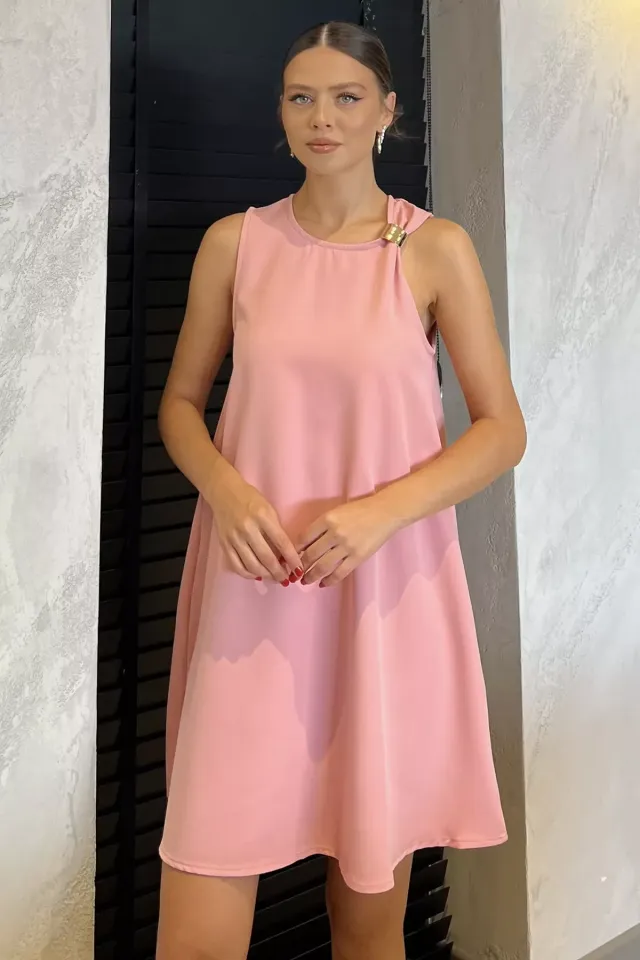 فستان ماكسي سادة بقصة A-Line وياقة ربط وبدون أكمام من قماش باراشوت لإطلالة صيفية مريحة ومنسدلة