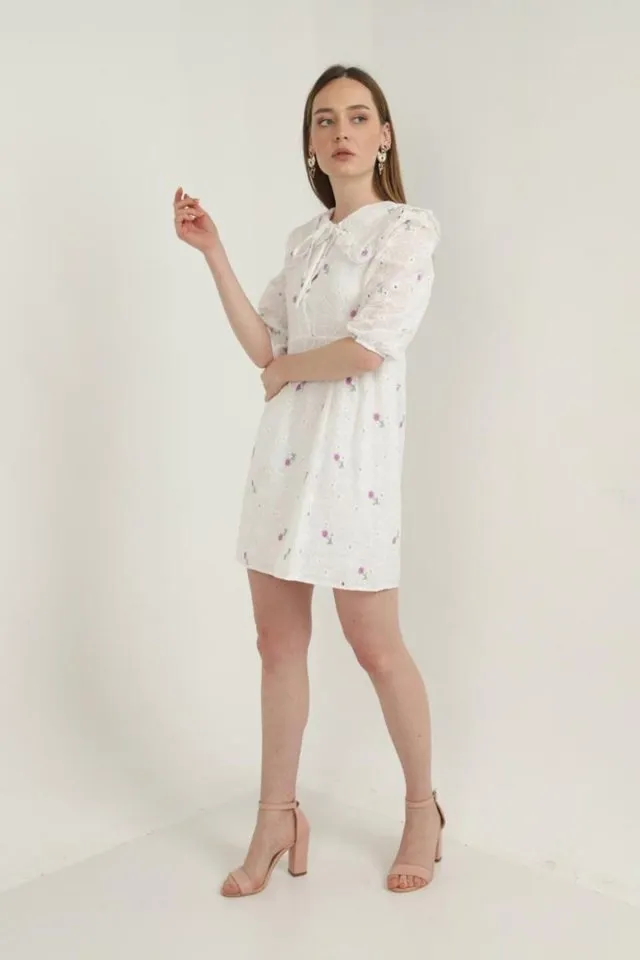 فستان ميدي واسع بأكمام قصيرة وفتحة جانبية للنساء