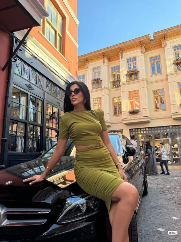 فستان ميني ضيق بياقة V وأكمام قصيرة مع تفاصيل شد جانبية للنساء - Beyond Store