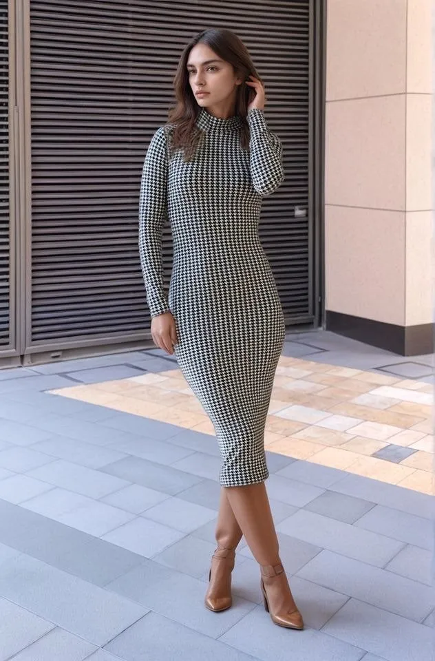 فستان ضيق مضلع بأكمام كلوش وخصر برباط يمنحك راحة مرنة في الإطلالات اليومية الصيفية