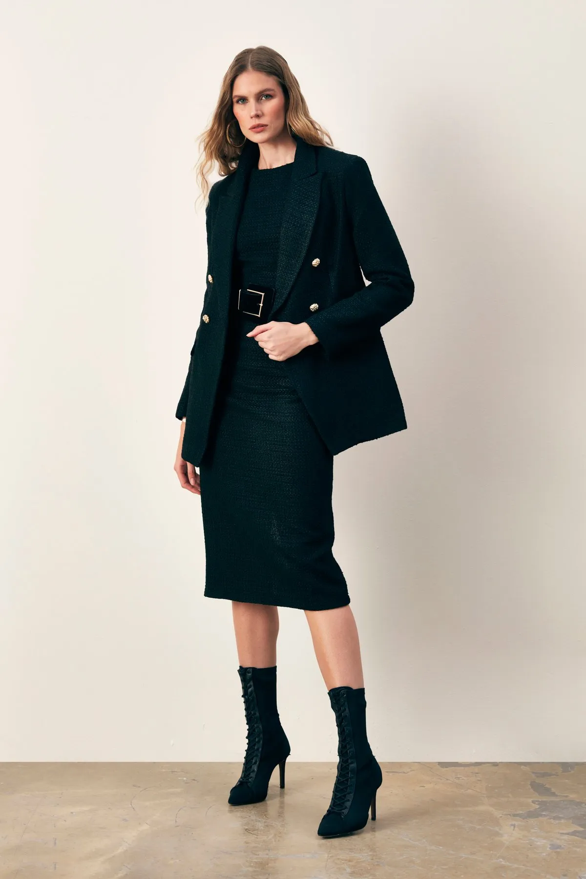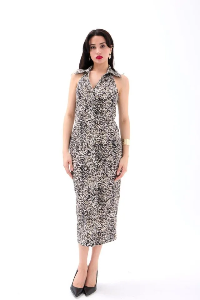 فستان ميني بدي كون بياقة دائرية وأكمام طويلة مع تفصيل تول شفاف. قصة ضيقة تناسب التنسيقات اليومية والإطلالات الانسيابية للنساء.
