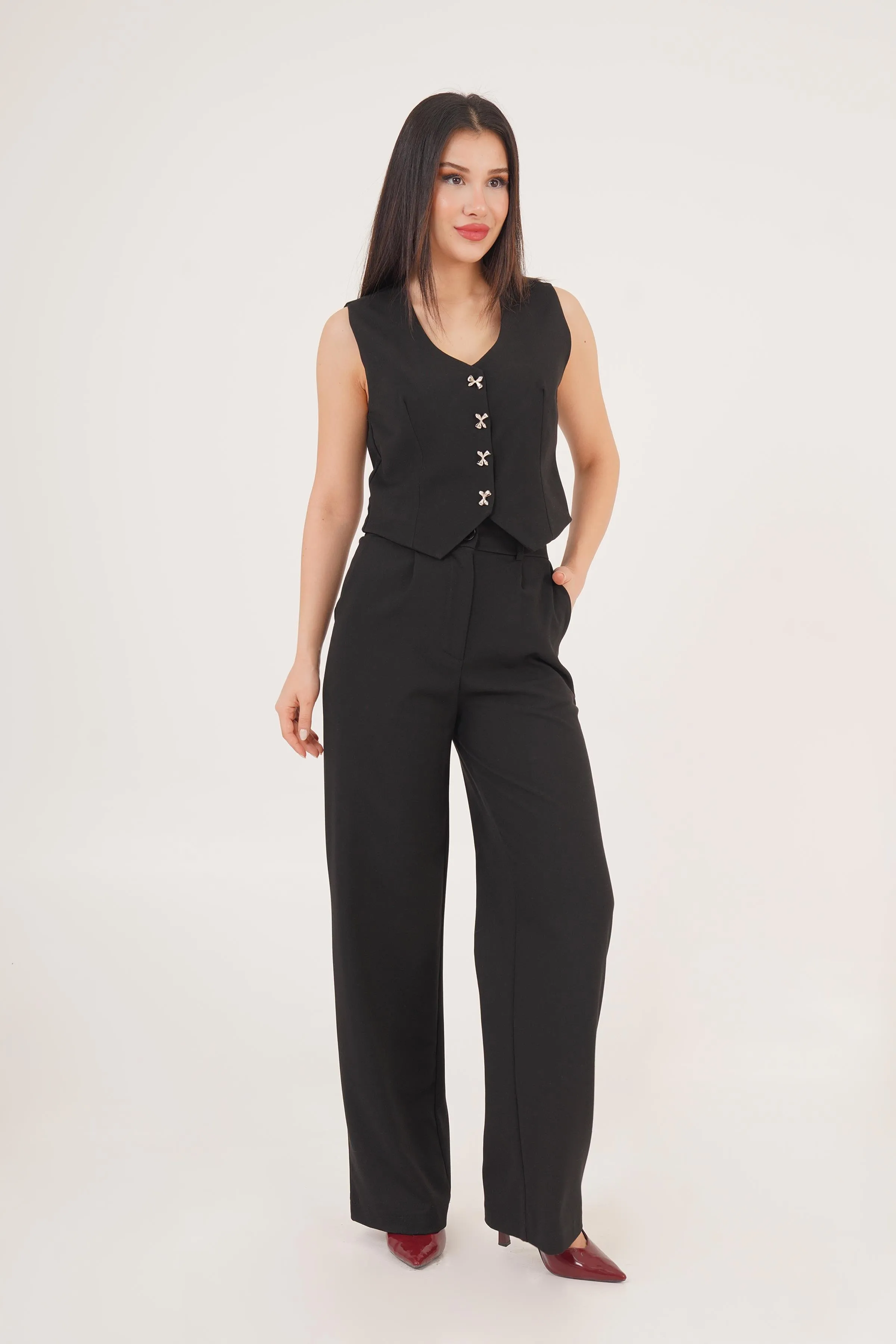 طقم كيمونو كبير الحجم منقوش بحزام وبنطلون بخصر مرن للنساء