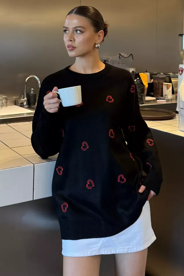 كنزة تريكو مضفرة بكتف منخفض وياقة دائرية، قطعة خفيفة تمنحك لمسة أناقة ناعمة في إطلالة العيد.