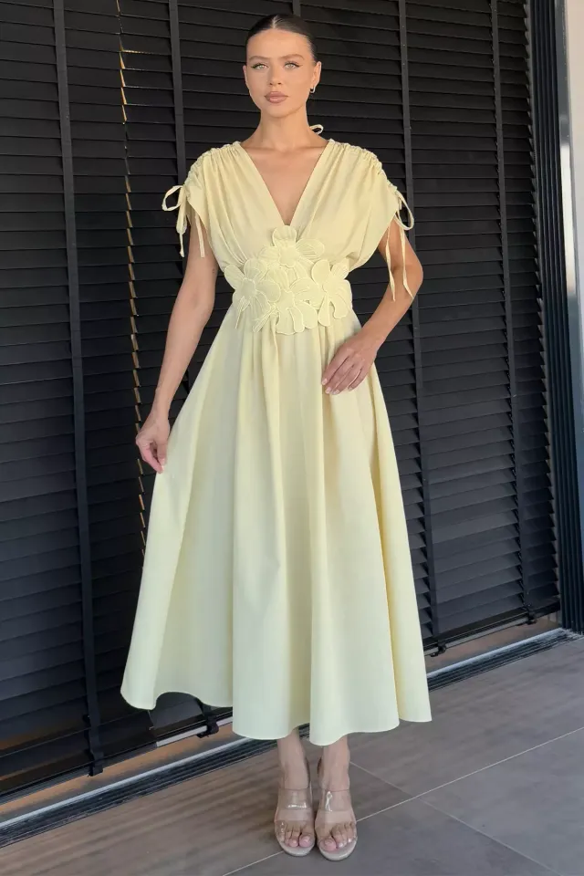 فستان كلوش بدون أكمام بياقة مربعة ونقشة . تصميم خفيف يناسب الأيام الصيفية المريحة والتنسيقات الكاجوال للنساء.