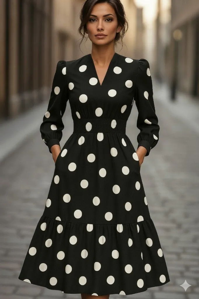 فستان نسائي ميدي كلوش بياقة U مع تفاصيل دانتيل غير متماثلة - Beyond Store