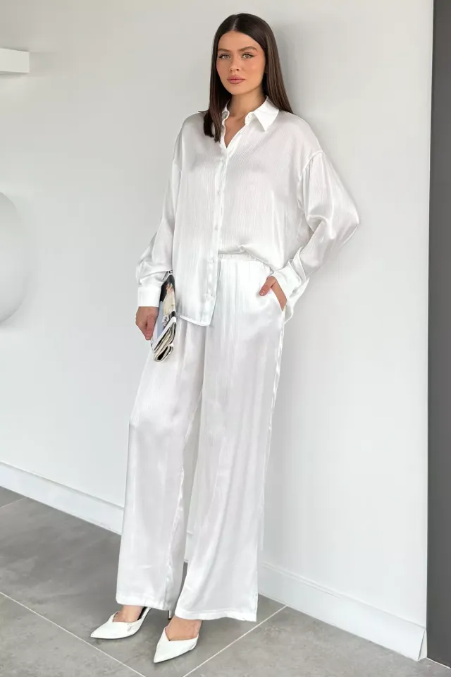 طقم قميص منقوش بأكمام طويلة وبنطال مريح للنساء. قماشه ناعم يسمح بمرور الهواء يضمن الراحة والأناقة. مثالي للربيع والصيف.