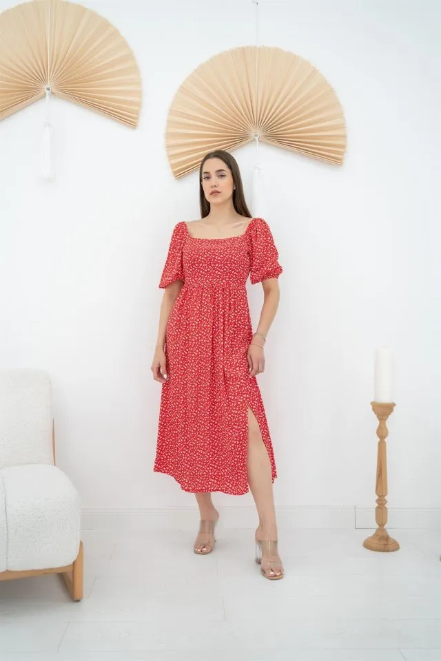 فستان نسائي ميدي بقصة A-Line وياقة قميص مع أكمام طويلة وجيبين
