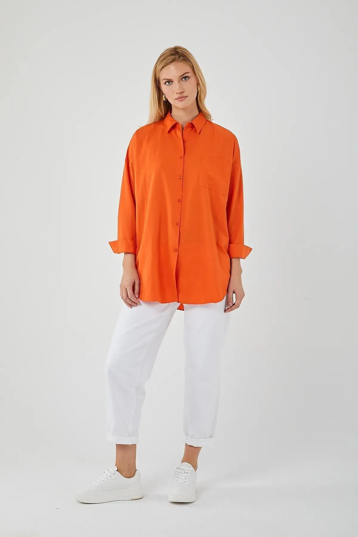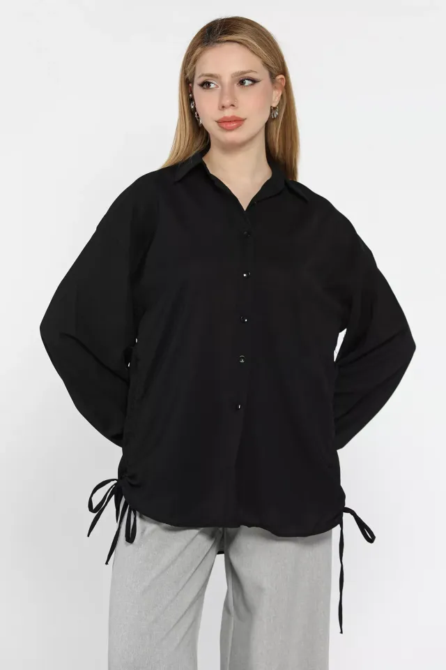 قميص نسائي مخطط بأكمام قصيرة وجيبين أماميين. خفيف وأنيق، مثالي للارتداء اليومي.
