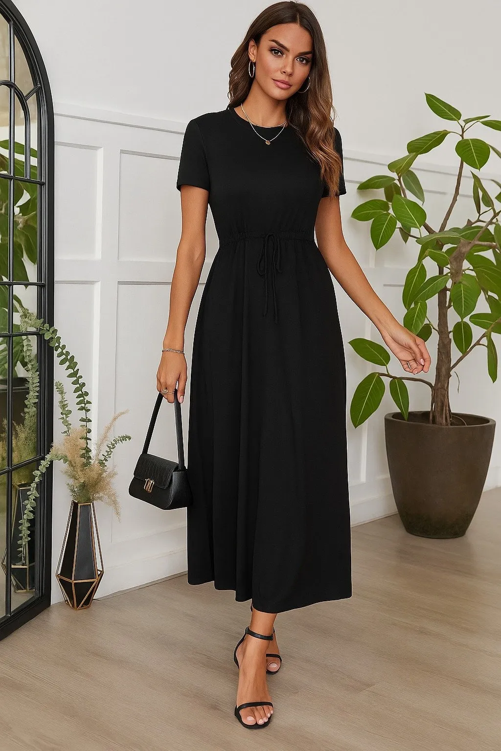 فستان A-Line مشجر بياقة مربعة وأزرار أمامية مع شق جانبي لطلات خفيفة في الصيف