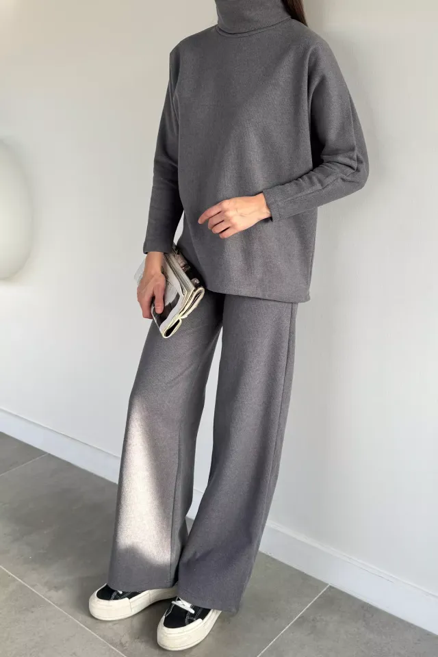 طقم كيمونو كبير الحجم منقوش بحزام وبنطلون بخصر مرن للنساء