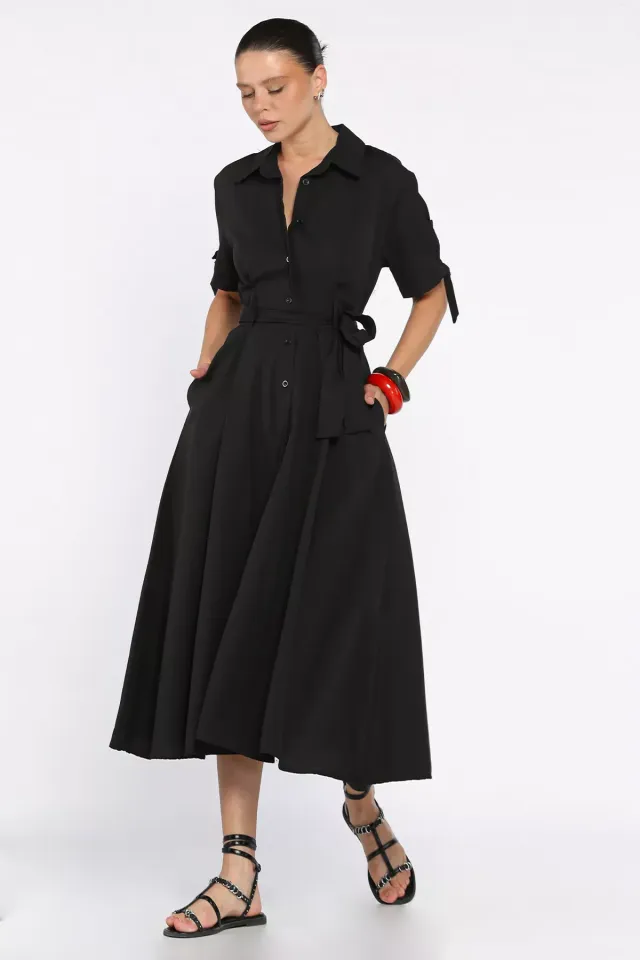 فستان ميدي منقوش بياقة ربط وظهر مكشوف للنساء - Beyond Store