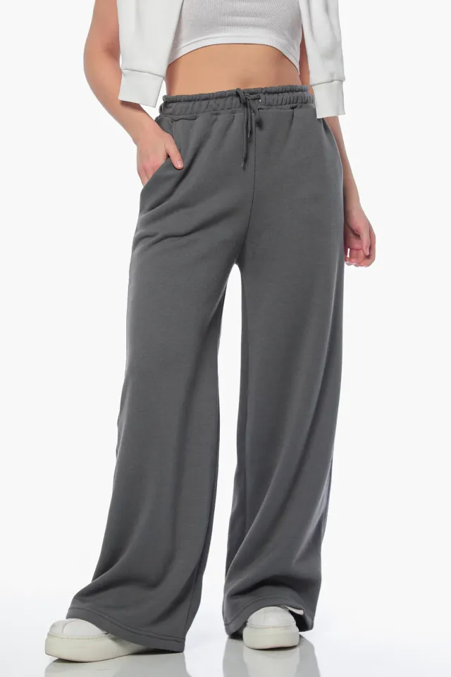 بنطال رياضي بخصر مطاطي وتصميم لافت بنصف أمامي سادة وخلفي جينز. قطعة عصرية مميزة للنساء.