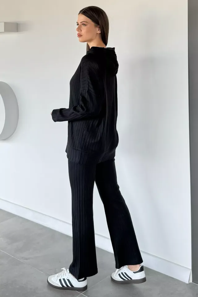 كيمونو بأكمام طويلة مخطط مع سروال واسع برباط من الساتان للنساء