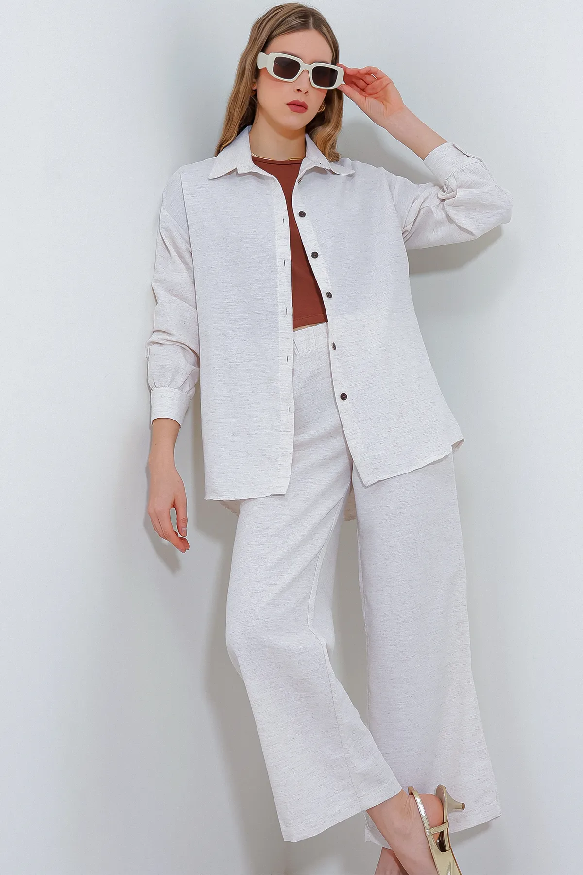 كيمونو بأكمام طويلة مخطط مع سروال واسع برباط من الساتان للنساء - Beyond Store