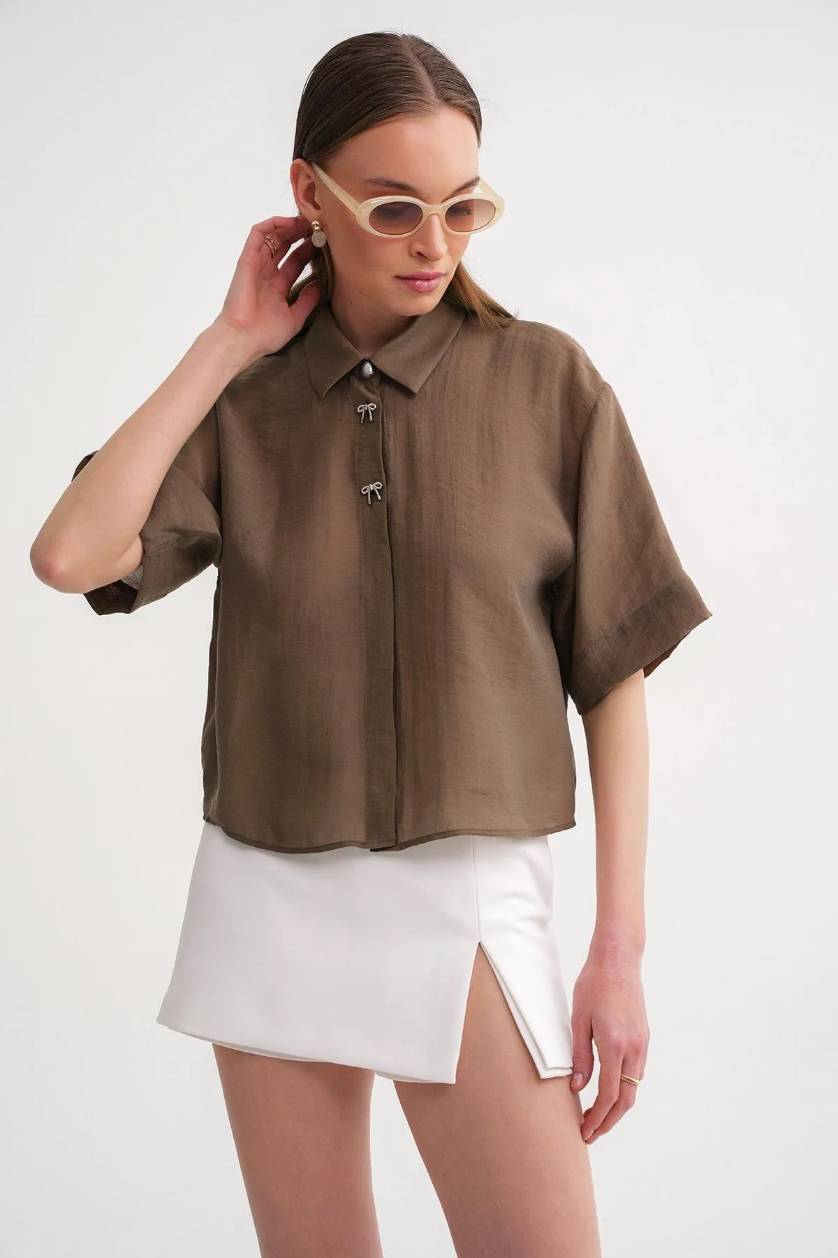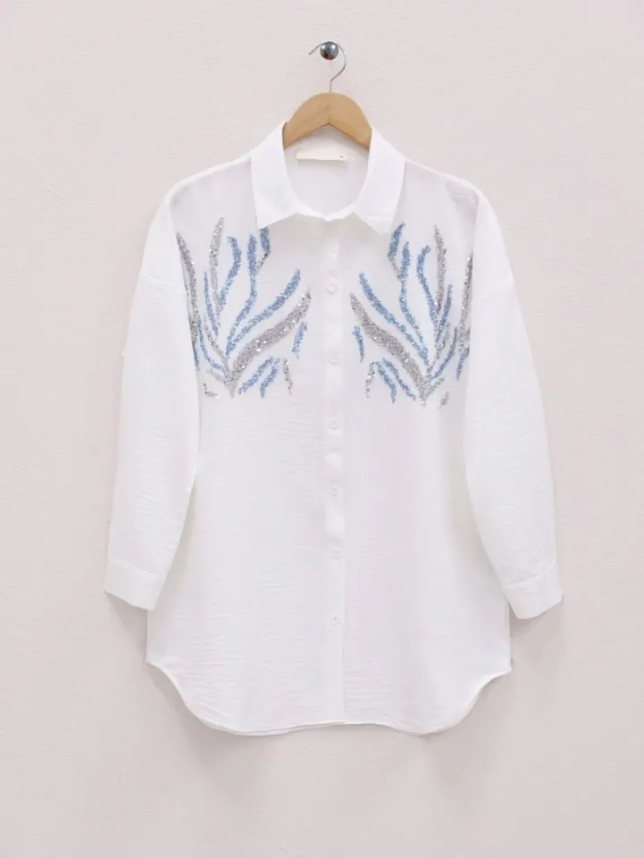 قميص ساتان نسائي بأكمام طويلة وشقوق جانبية. أنيق وناعم، مثالي لإطلالاتكِ اليومية الأنيقة.