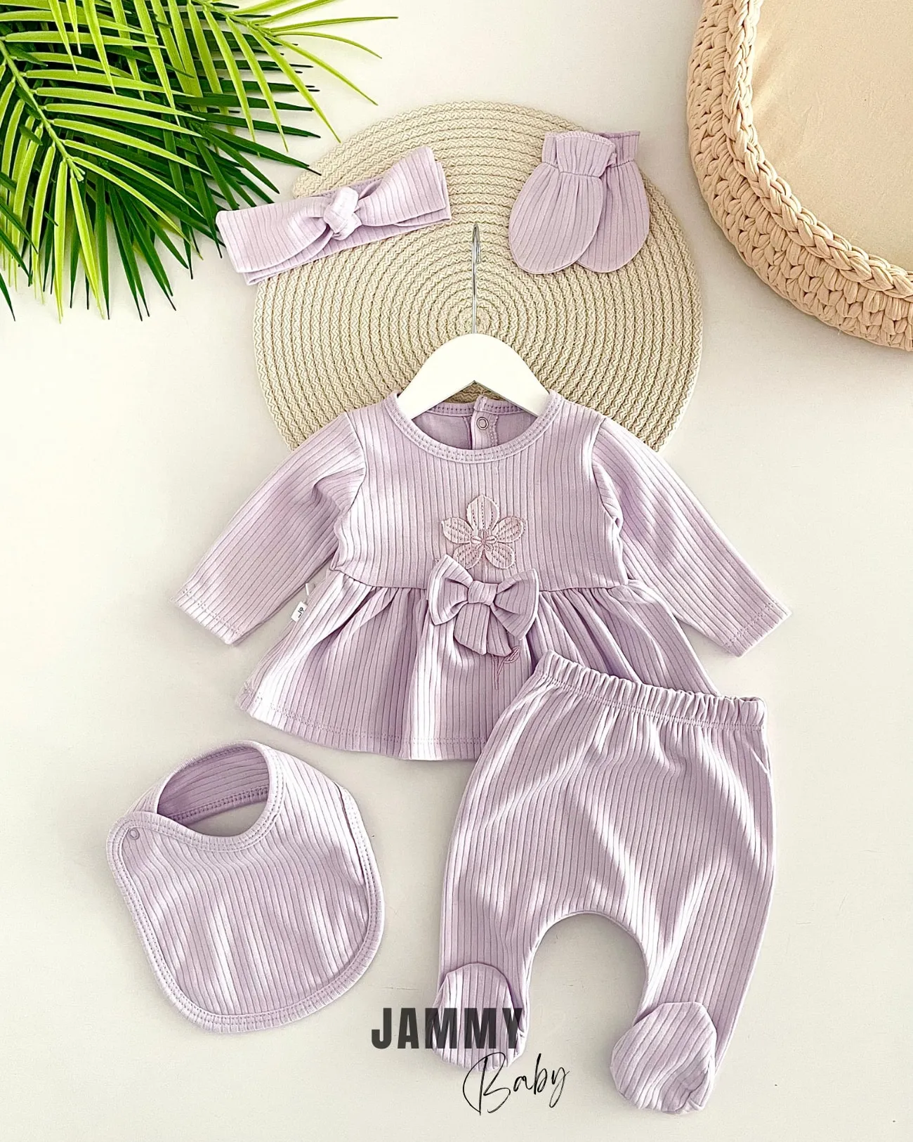 طقم أفرول 3 قطع للبنات الرضع مصنوع من قطن 100%، ناعم وقابل للتهوية للحفاظ على راحة البشرة الحساسة. مثالي لجميع المواسم مع سهولة العناية وقماش متين.