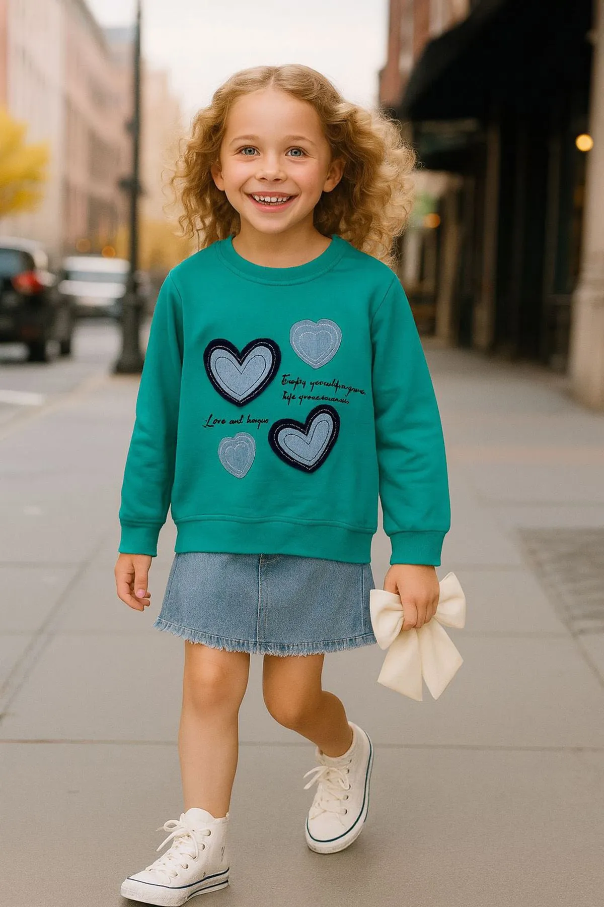 سويت شيرت مطبوع بأكمام طويلة وياقة دائرية للبنات