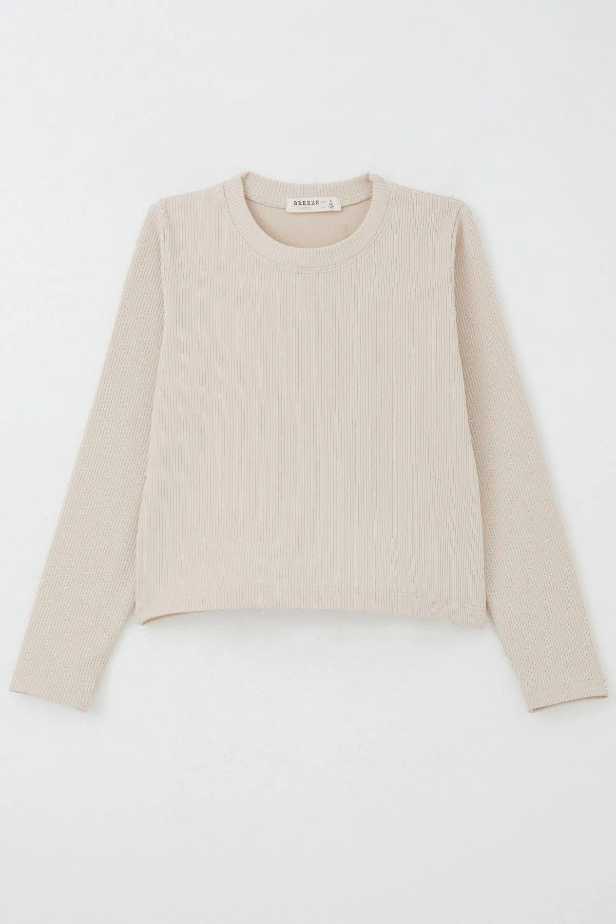 " inertia> سويت شيرت مطبوع بأكمام طويلة وياقة دائرية للبنات - Beyond Store