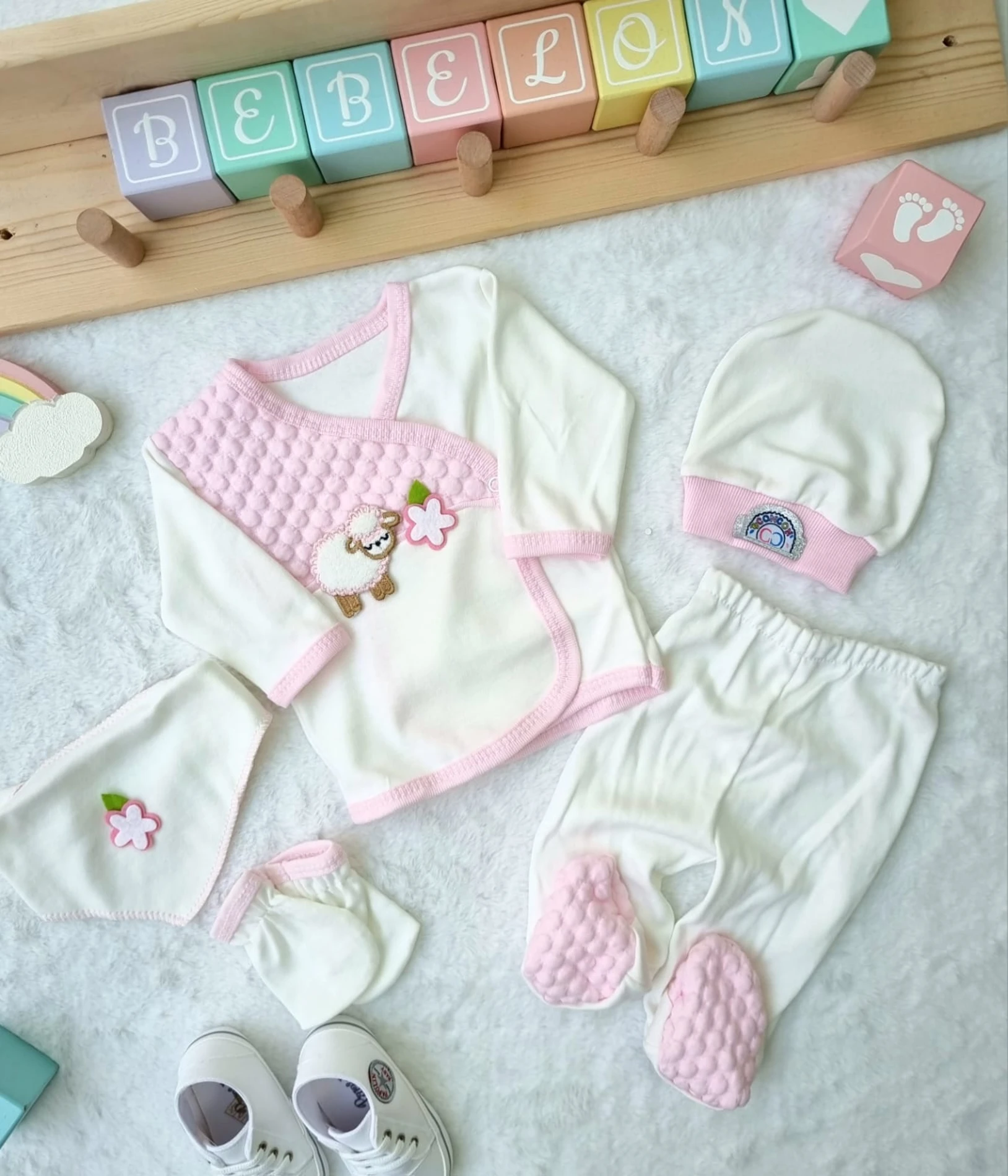 طقم رياضي للبنات الرضع مصنوع من 65% قطن، 30% بوليستر، و5% ليكرا، يوفر نعومة ومرونة ومتانة، مثالي للنشاط اليومي في جميع المواسم وسهل الغسيل بماء بارد.