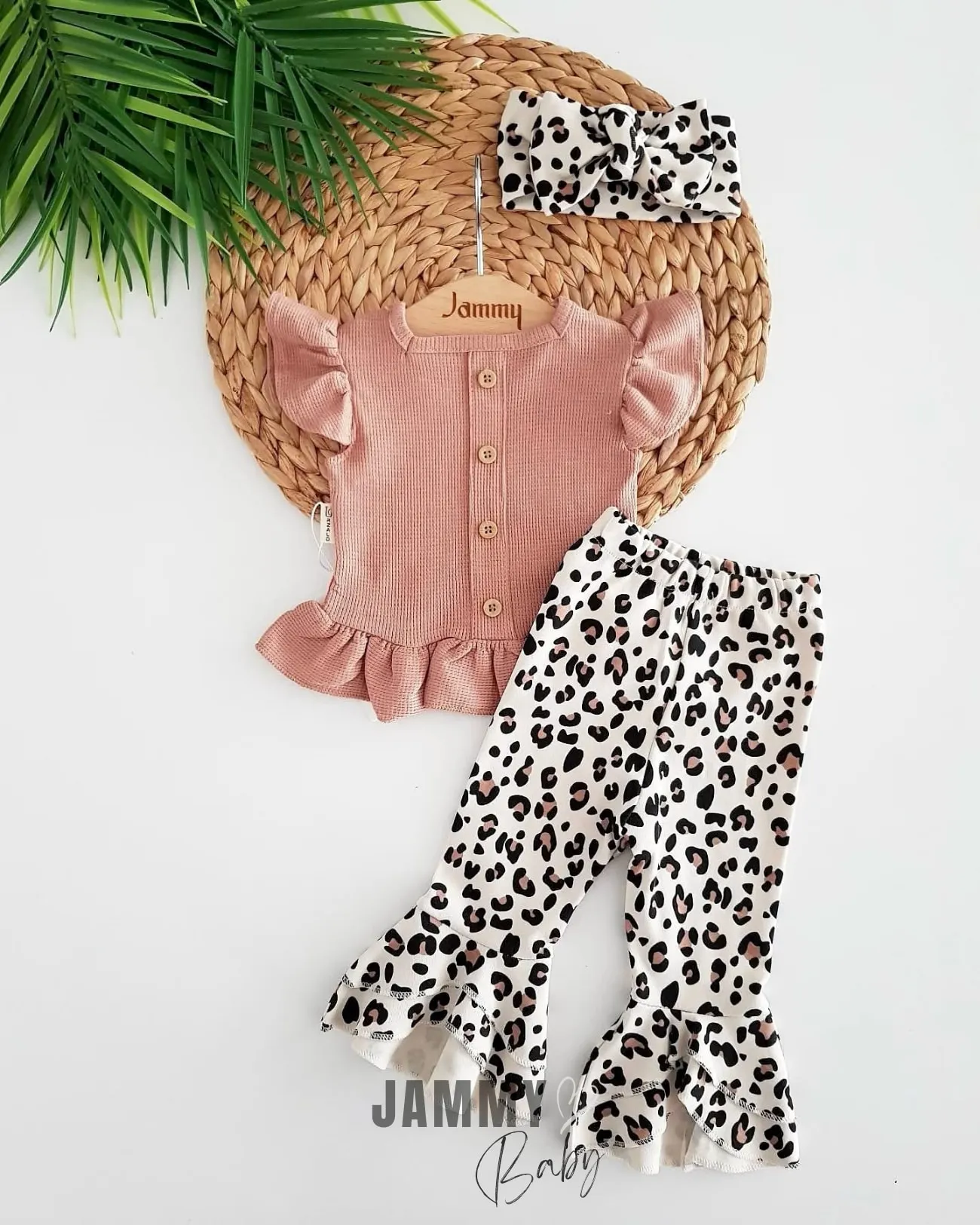 طقم مطبوع عليه زهور بأكمام قصيرة للبنات الرضع - Beyond Store