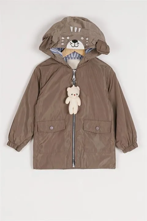 جاكيت بوفير مقاوم للرياح بأكمام طويلة وكابيشون مع أزرار إغلاق، مصنوع من 100% بوليستر ليحمي الطفل من الرياح والبرد مع تصميم عملي ومريح.
