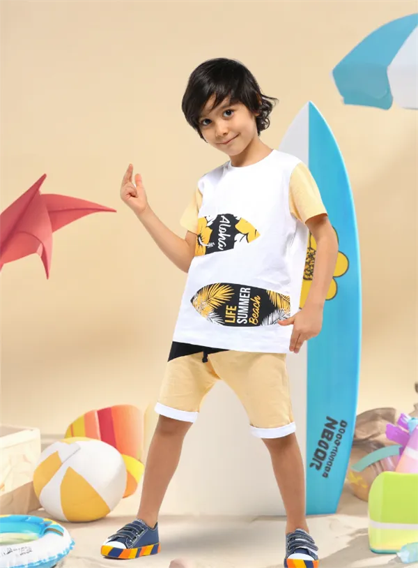 طقم بنطال رياضي مطرز بأحرف للأولاد مع رباط خصر - Beyond Store