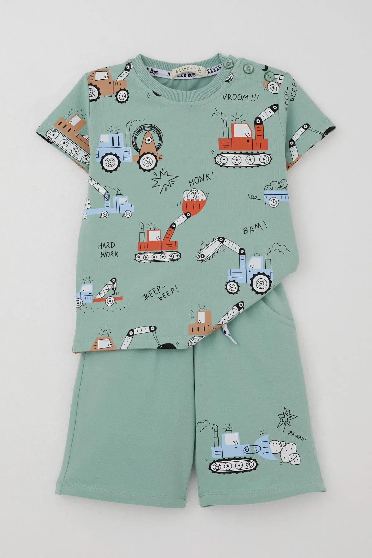طقم تيشيرت مطبوع بأكمام قصيرة و شورت للأولاد - Beyond Store