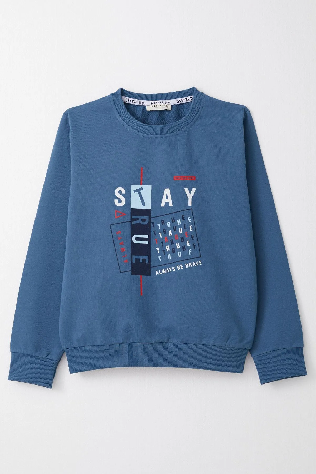 سويت شيرت مخطط بأكمام طويلة وكتف منسدل وياقة دائرية للأولاد - Beyond Store
