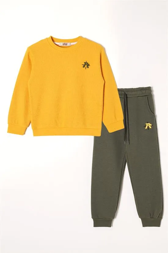 بدلة رياضية مطبوعة بحروف بياقة دائرية للأولاد - Beyond Store
