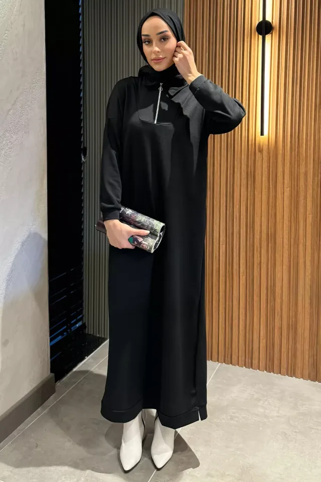 فستان ماكسي ساتان أنيق بحزام خصر وياقة قائمة. مثالي لإطلالات مسائية راقية واحتفالات العيد المحتشمة.