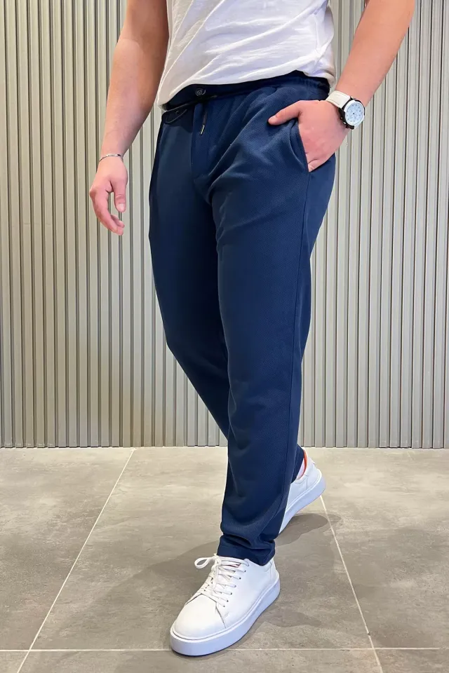 بنطلون رجالي ضيق (سليم فيت) بأزرار وسحاب للإغلاق، يجمع بين التصميم العصري والراحة المرنة. مصنوع من 95% قطن و5% لايكرا. قابل للغسل على درجة حرارة 40 درجة مئوية.