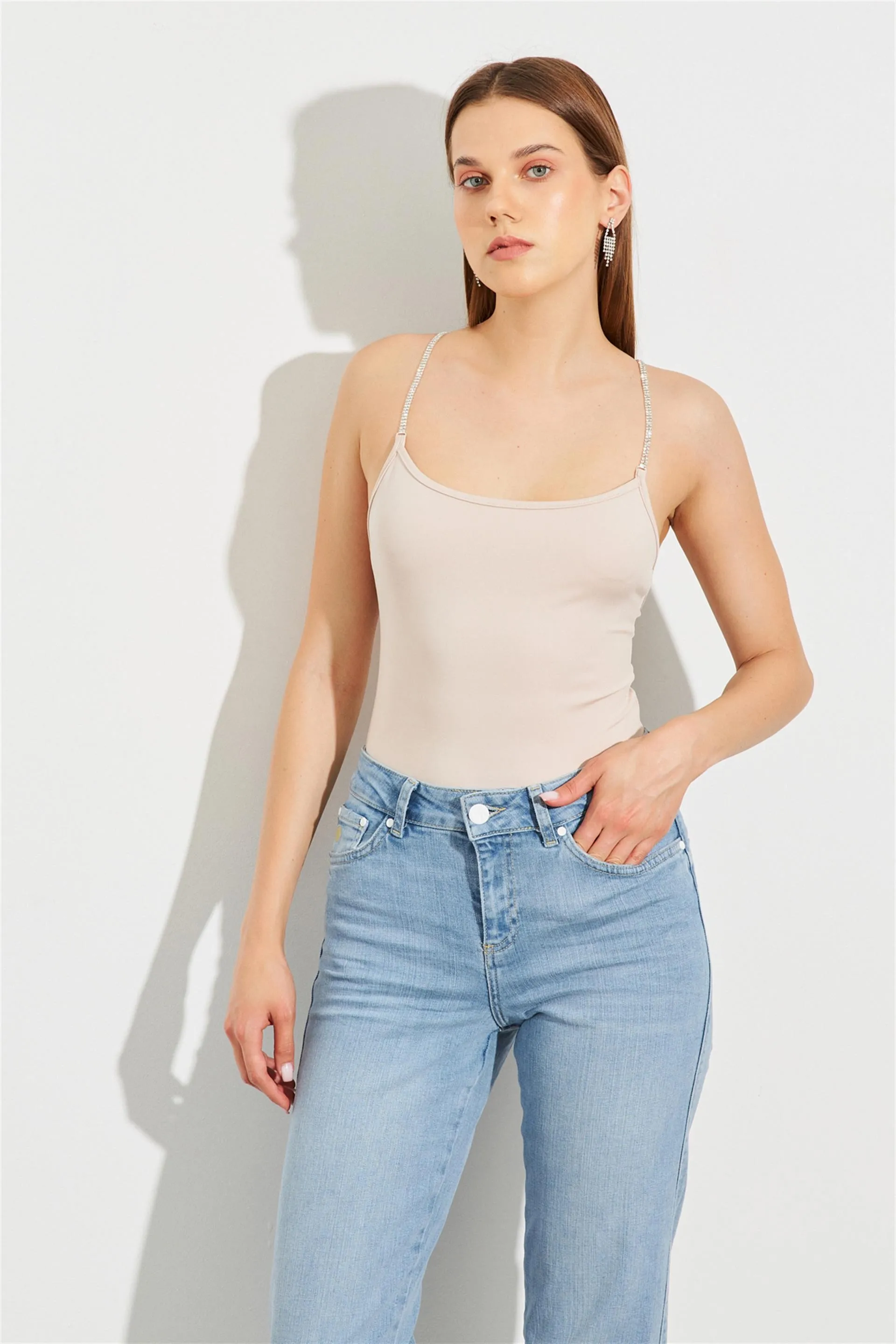 كروب توب نسائي مزين بترتر وياقة مربعة بحمّالات رفيعة - Beyond Store