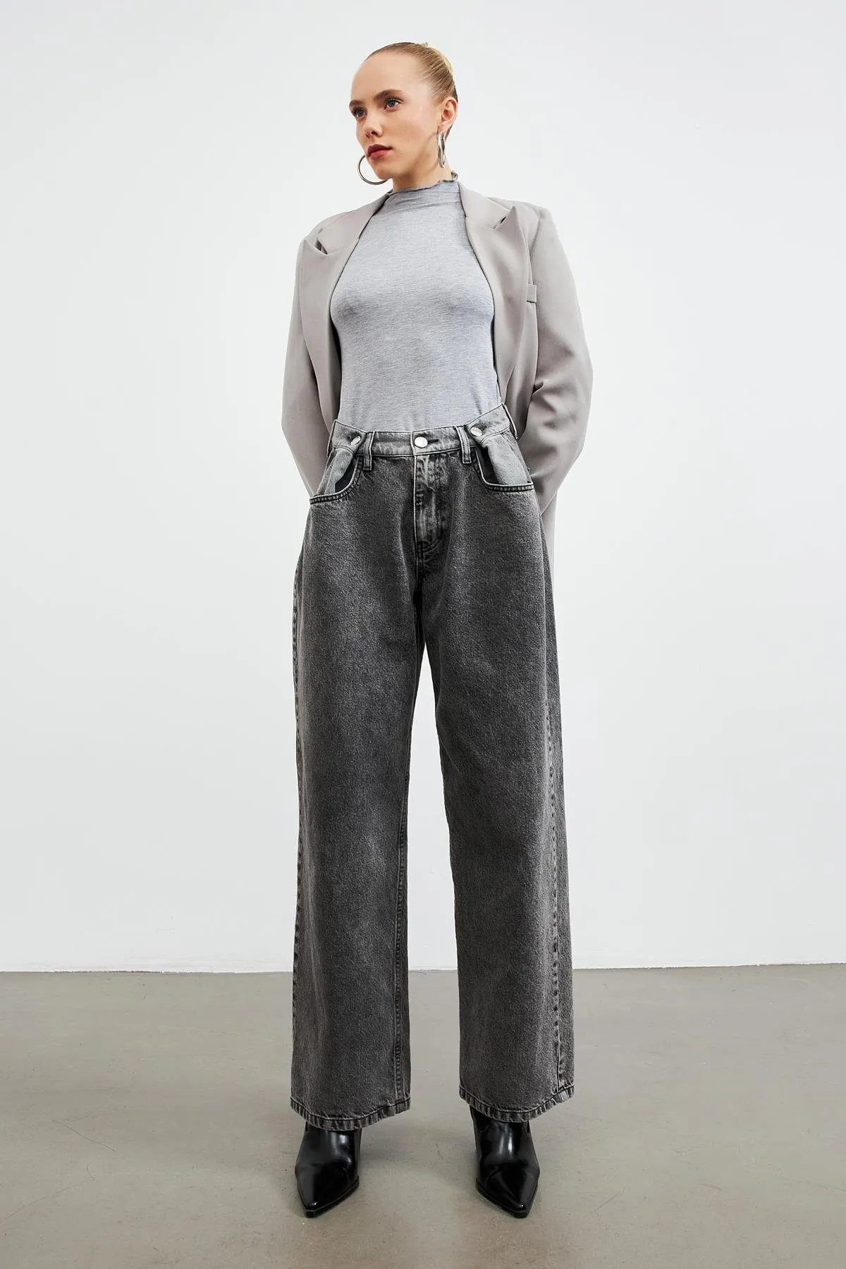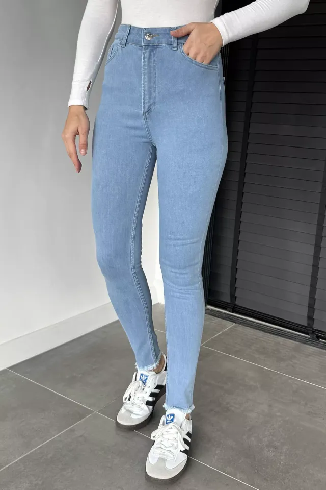 بنطلون جينز موم بخصر مرتفع وقصة ضيقة بتصميم دنيم كلاسيكي، قطعة خالدة لإطلالات العيد اليومية.