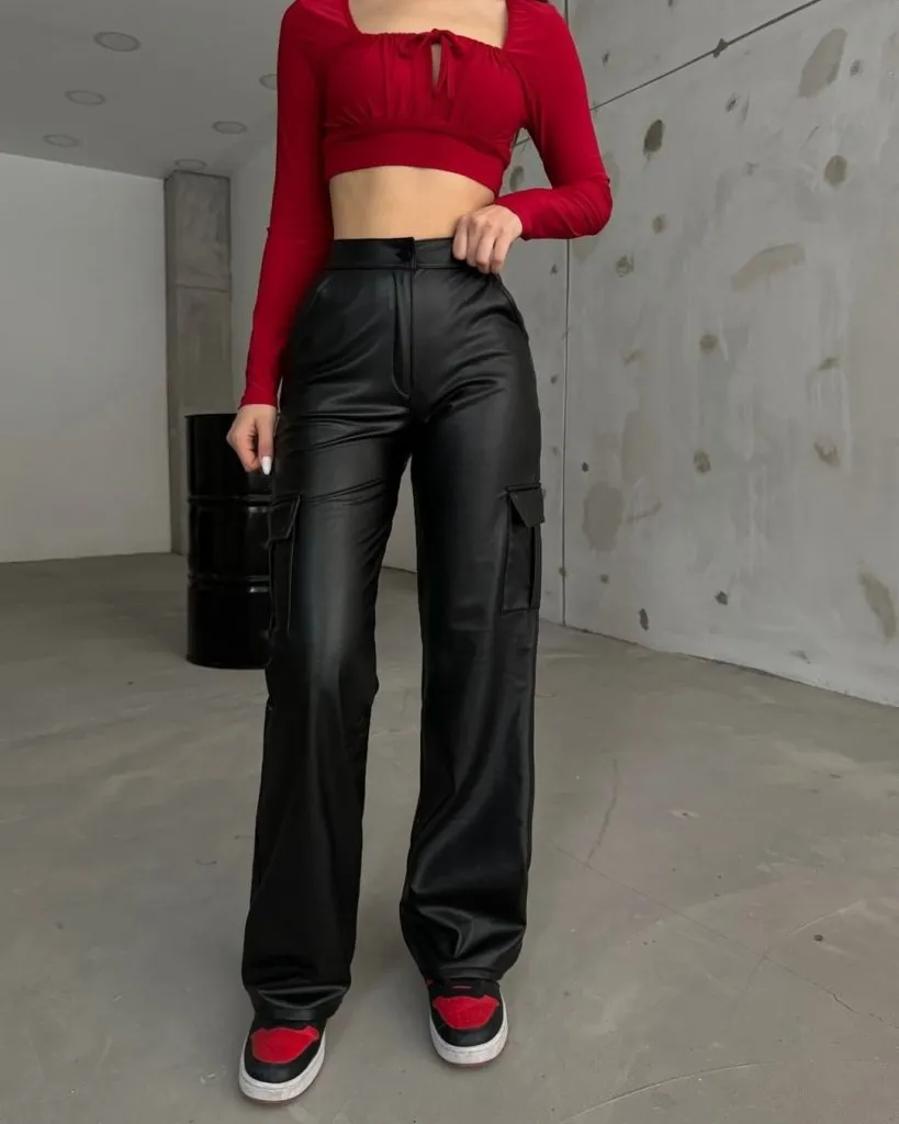 بنطال كتان بخصر مرتفع وأطراف مطوية وقصة مستقيمة أنيقة. مثالي لإطلالات العيد الراقية.