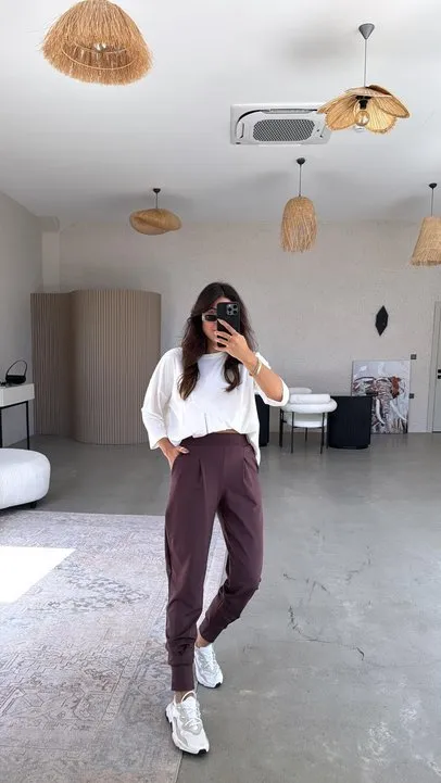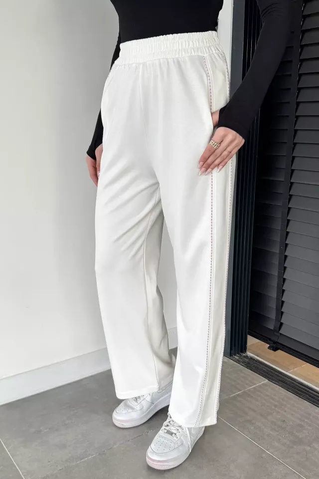 بنطال كتان بخصر مرتفع وأطراف مطوية وقصة مستقيمة أنيقة. مثالي لإطلالات العيد الراقية.