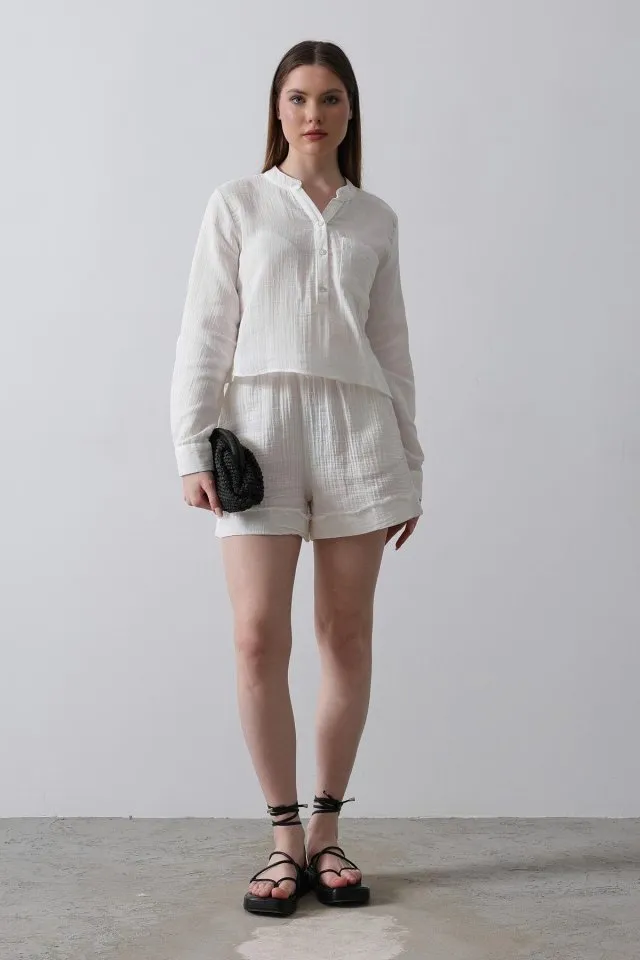 قماش مخطط مع رباط على الخصر بقصة مريحة. خيار منعش للإطلالات الكاجوال الخفيفة للنساء.