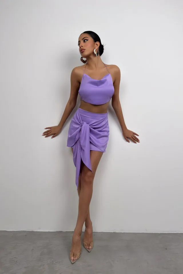بلوزة نسائية بياقة مربعة وتفصيل ربط أمامي مع أكمام منتفخة وطيات ناعمة. خيار أنثوي وخفيف للإطلالات الصيفية اليومية.
