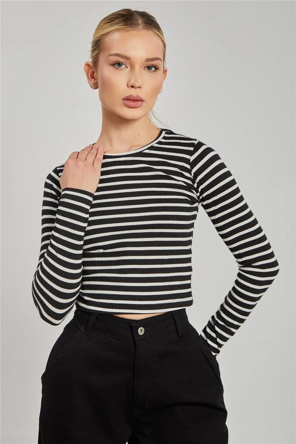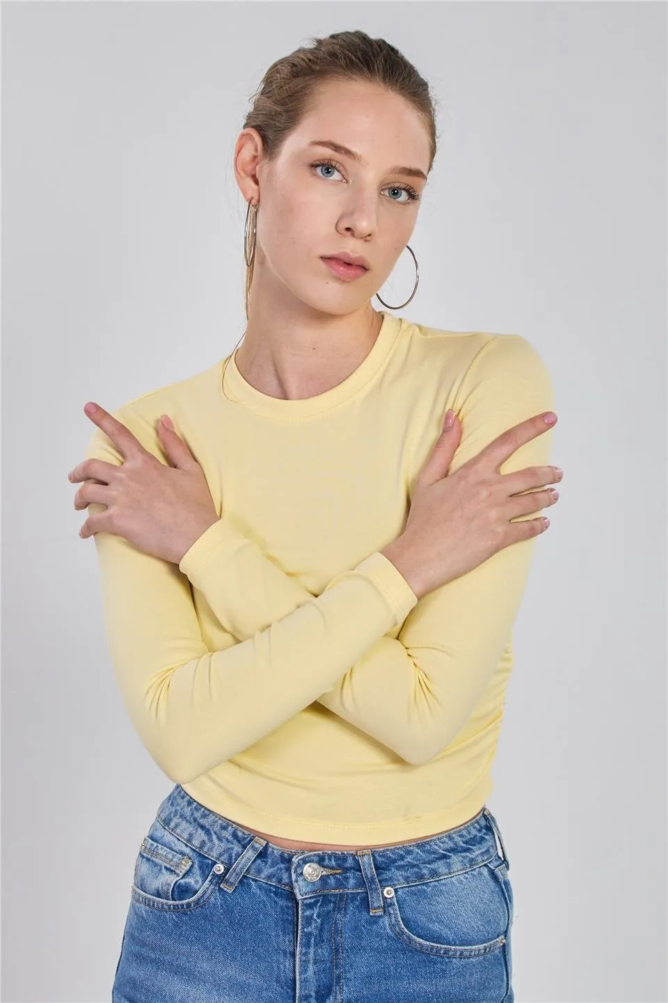 بلوزة بتفاصيل ازرار كبس أمامي وبستييه داخلي وياقة V