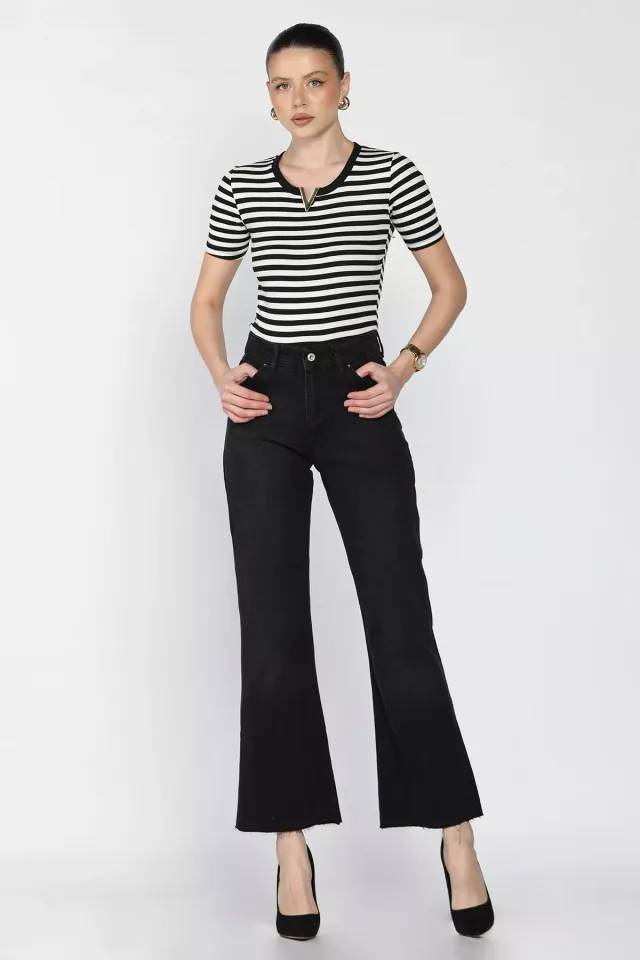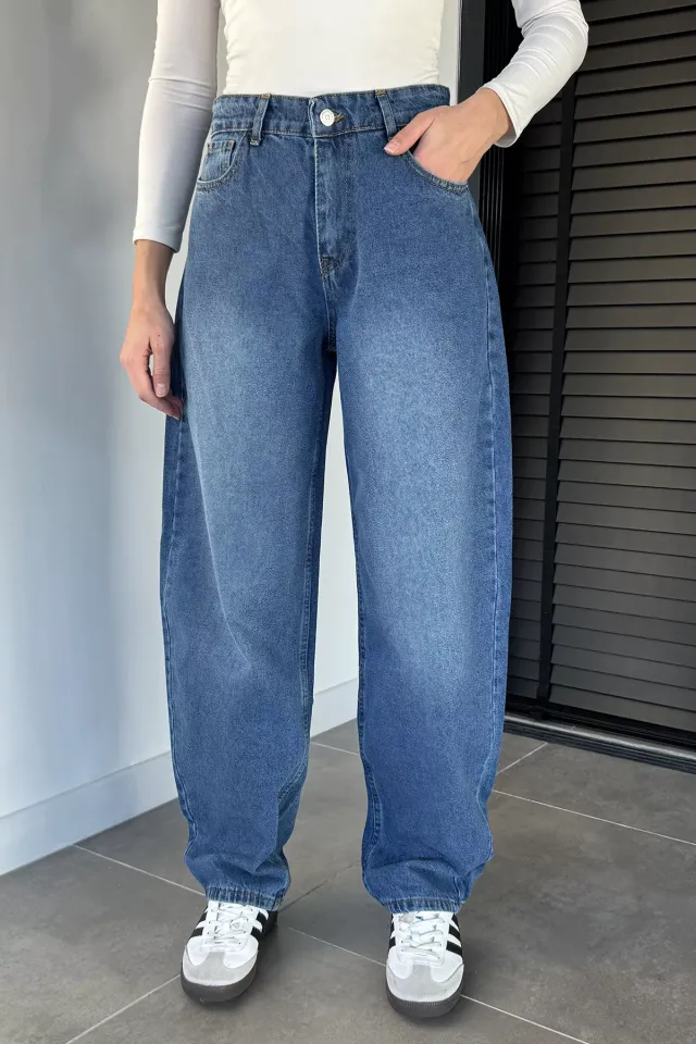 جينز نسائي بخصر عالي وقصة رجل واسعة مصنوع من 98% قطن و2% ليكرا
