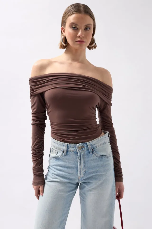 بلوزة بملمس مجعد بياقة مربعة وأكمام بالون. تضيف لمسة مريحة وجذابة للإطلالات اليومية.