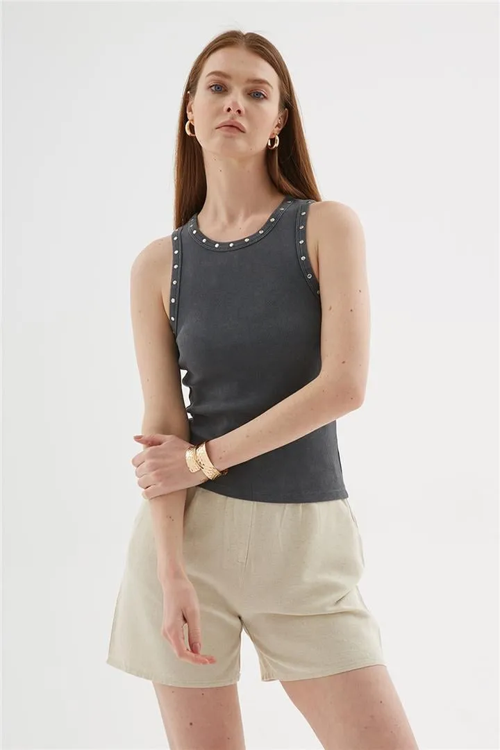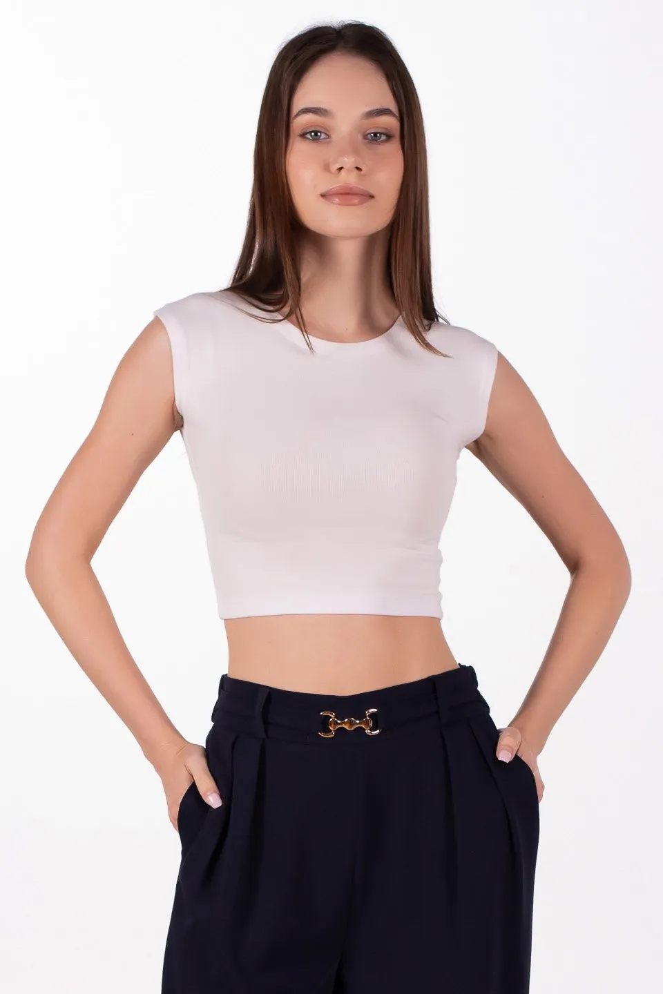 توب ضيق بأكمام قصيرة وياقة قائمة للنساء