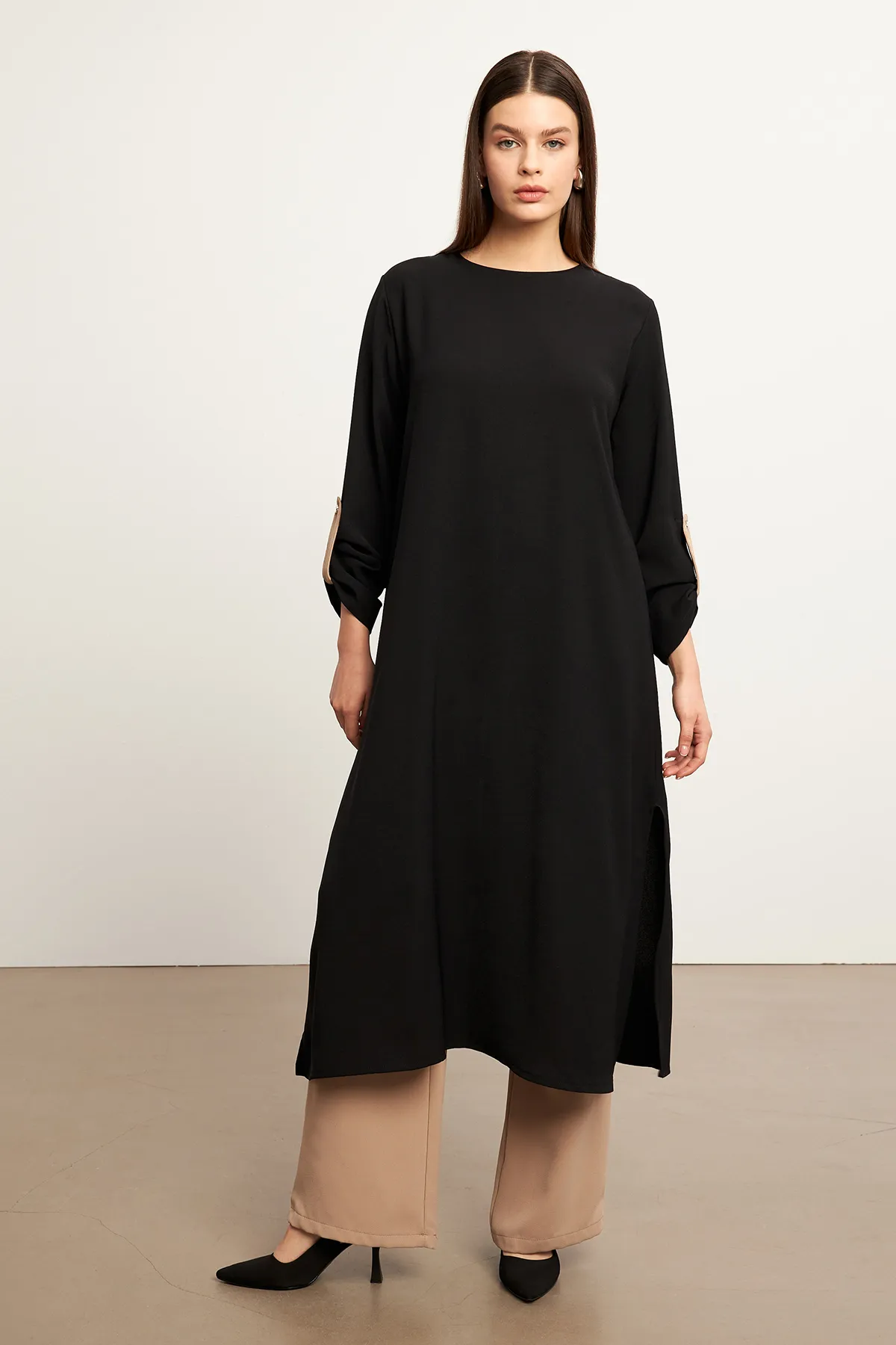 طقم محتشم منسوج بياقة قميص وأزرار أمامية وكتف منخفض، قطعة أساسية مريحة ومنعشة لموسم الصيف للنساء.