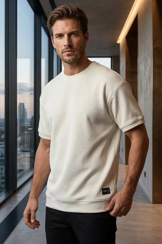 تيشيرت صيفي أساسي سادة بياقة نصف عالية للرجال - Beyond Store
