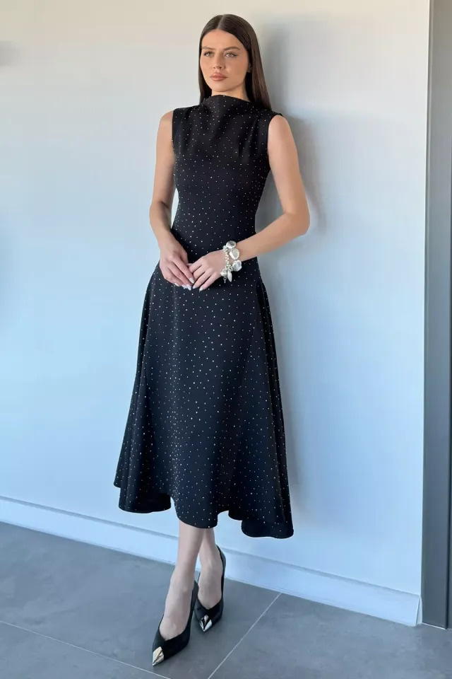 فستان نسائي قصير من قماش مبّرم بياقة قميص وجيبين وأزرار أمامية